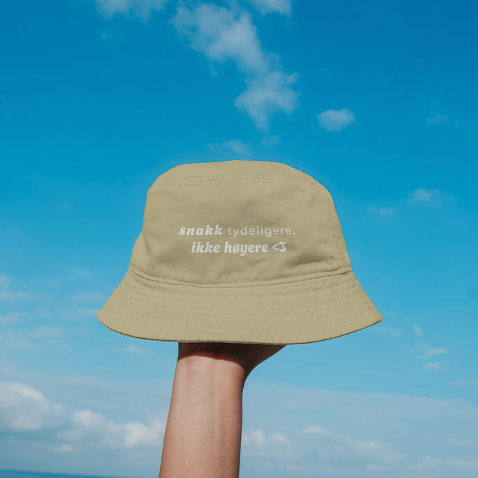 Bøttehatt med budskap: Snakk tydligere, ikke høyere